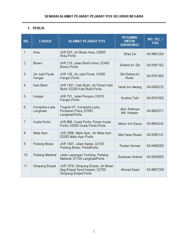 Senarai Alamat No Telefon Pejabat Pos Malaysia Pdf