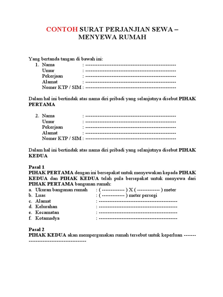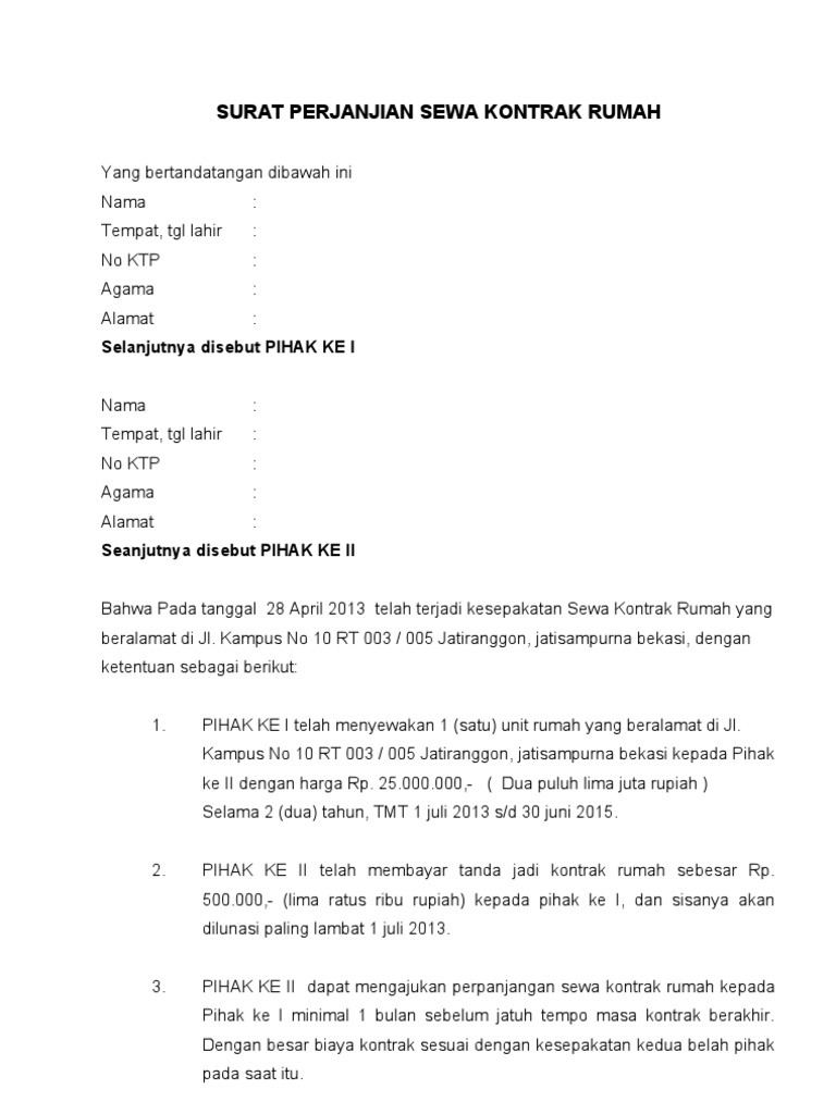 Surat Perjanjian Sewa Rumah Pdf